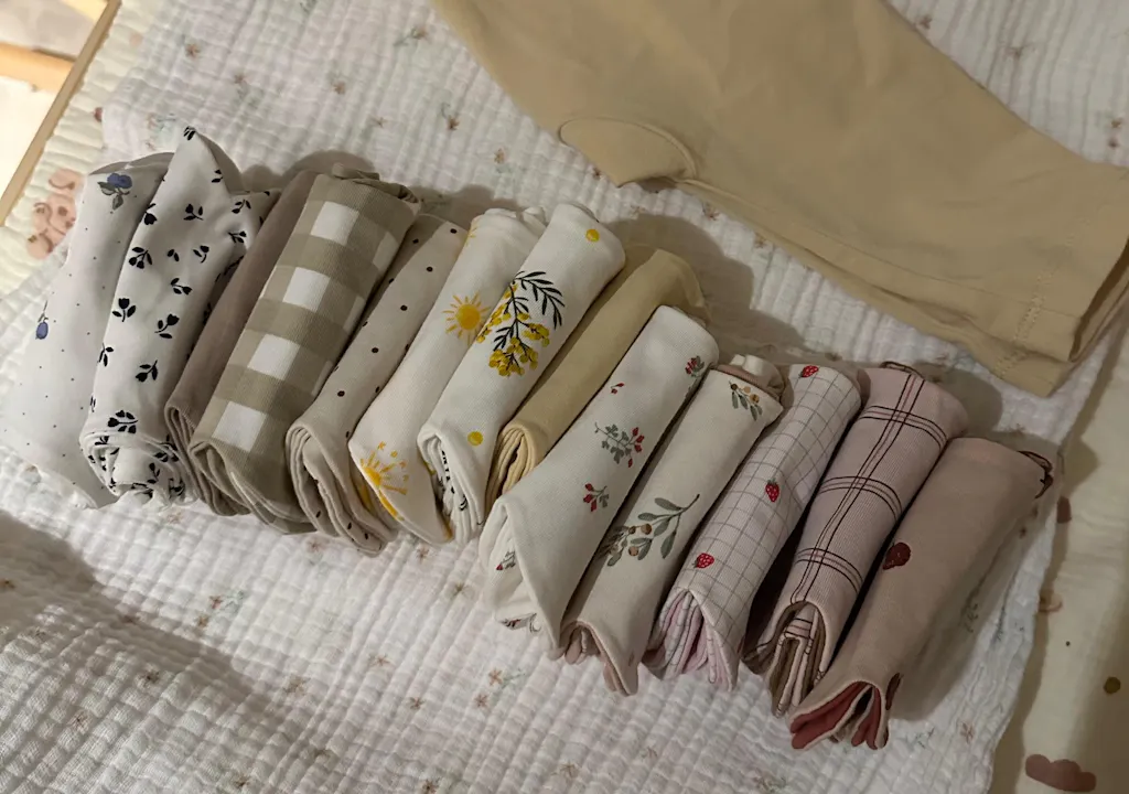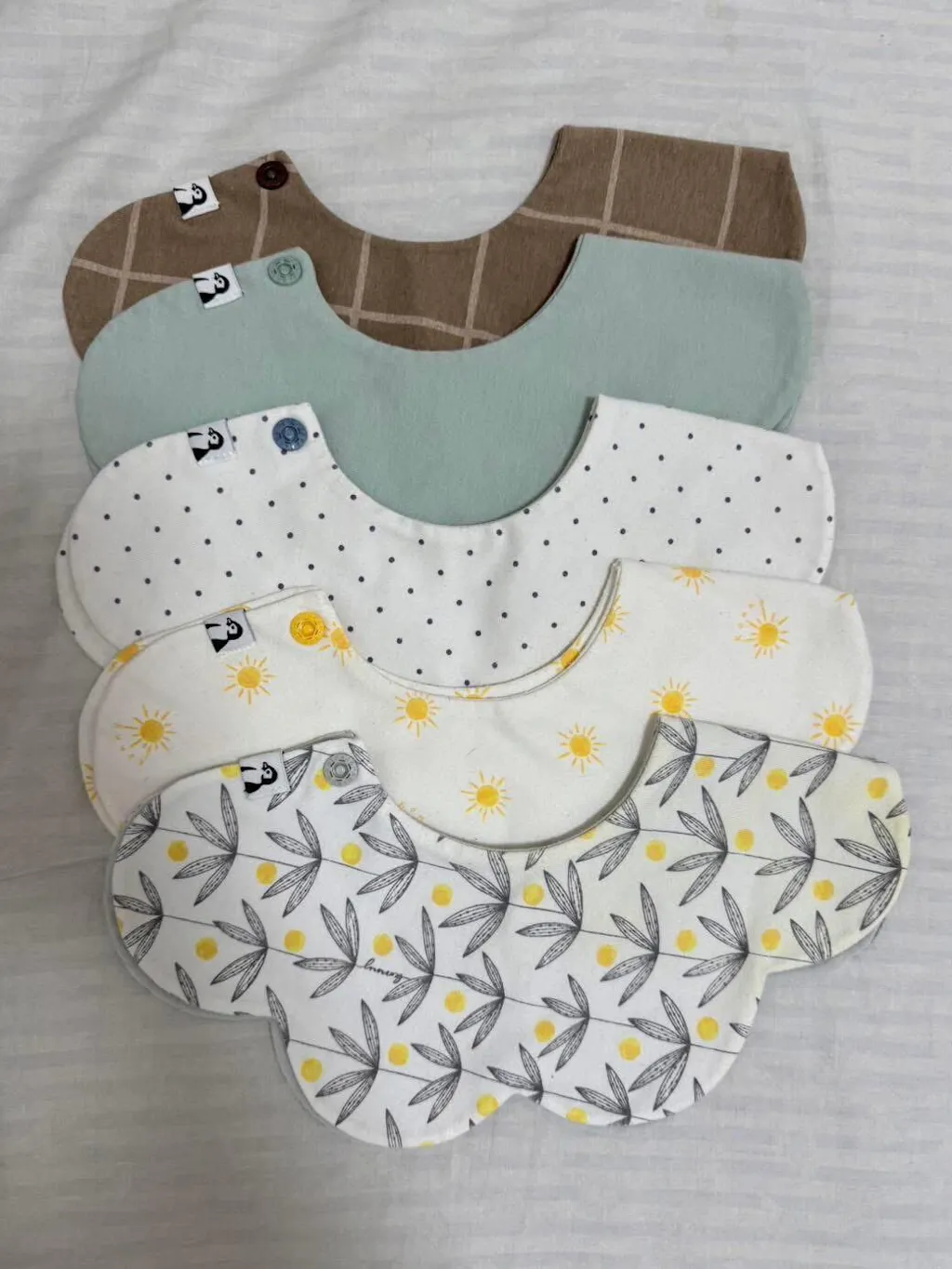燕麥色、淺灰色的經典款口水巾布料,